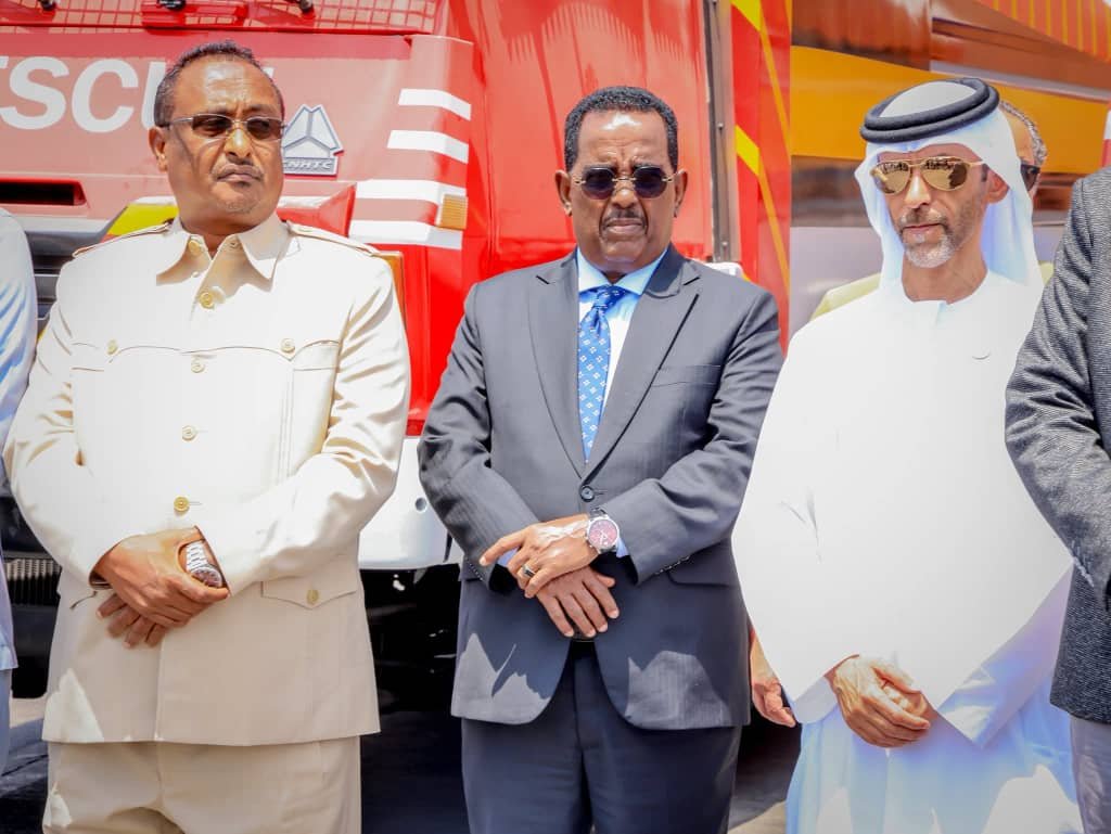 تسلّم محافظ إقليم بنادر وعمدة مدينة مقديشو، الدكتور حسن محمد حسين (مونغاب)، اليوم من دولة الإمارات العربية المتحدة سيارتين حديثتين للإطفاء والإنقاذ، وذلك ضمن الجهود الرامية إلى تعزيز قدرات الدفاع المدني في العاصمة مقديشو.